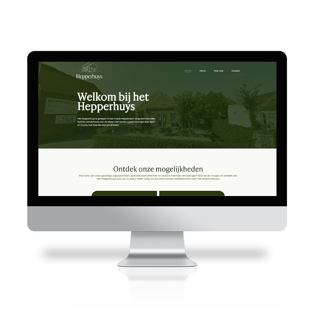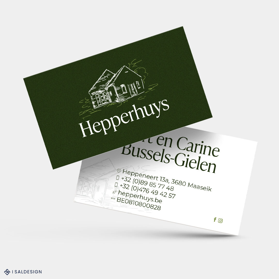 Voor Bistro Hepperhuys in het pittoreske Heppeneert mocht ik een volledige rebranding verzorgen. De eigenaars klopten bij mij aan voor een nieuwe website, visitekaartjes, menukaarten en meer. Hun bestaande logo was niet langer bruikbaar in hoge resolutie, dus ik gaf het een subtiele opfrissing en zorgde meteen voor een vectorieel bestand – praktisch voor zowel web als drukwerk. De nieuwe website straalt frisheid en moderniteit uit, met een lichtere, hedendaagse uitstraling die perfect aansluit bij de sfeer van de bistro. Ik koos voor een olijfgroene basiskleur, in harmonie met hun vorige huisstijl, aangevuld met wit, lichtgroen en goudaccenten. Het resultaat oogt verfijnd en stijlvol. Van ontwerp tot drukwerk – ik nam het volledige traject op mij. De klant geniet nu van één aanspreekpunt voor alles: websitebeheer (inclusief hosting en design), grafisch werk én social media. Volledige ontzorging, zodat zij zich kunnen focussen op wat ze het liefste doen: hun gasten verwennen.