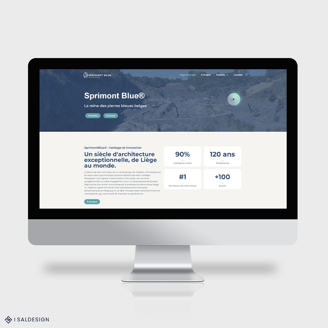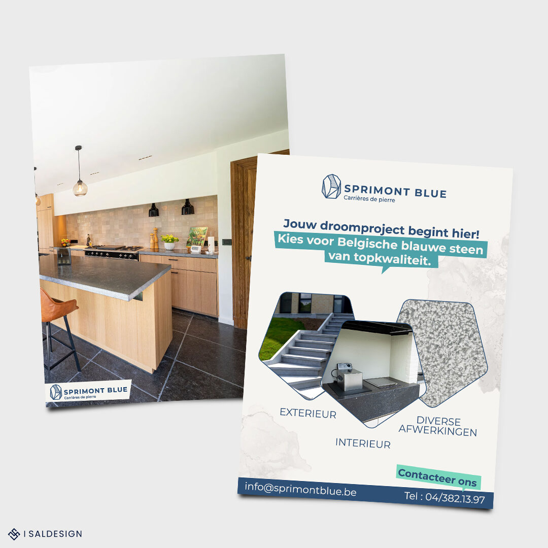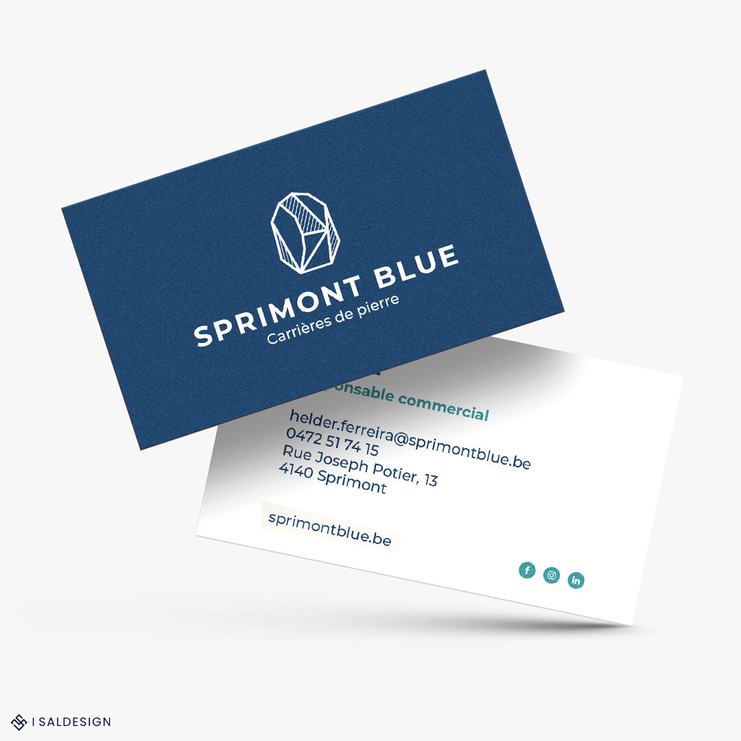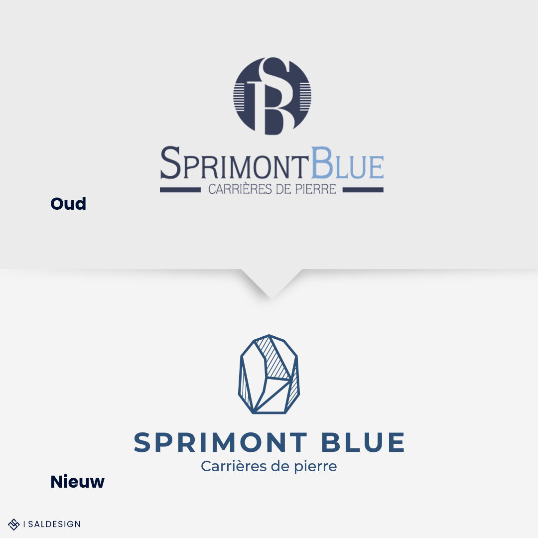 Voor de rebranding van Sprimont Blue heb ik gekozen voor een strak, modern en gestileerd beeldelement: een ruwe steen